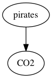 As another example, there’s a negative correlation between the number of pirates operating in the world’s oceans and atmospheric CO2 concentration. It could be that pirates directly reduce atmospheric CO2 concentration: