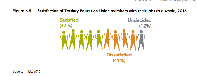 Statistic: Productivity Commission New Models Of Tertiary Education: Satisfaction of Tertiary Education Union Members with their jobs as a whole, 2016. Figure 6.5, p. 191
